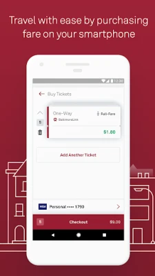 • Purchase BaltimoreLink Local Service, MARC Train, and Commuter Bus tickets all from one app.