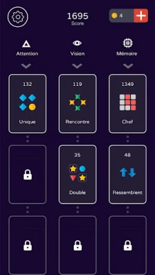 Each level tests your cognitive skills and mental abilities. You can track your progress after each level. Depending no your performance you can receive stars from 1 to 5. Completing each level with at least 3 stars will provide one golden coin.